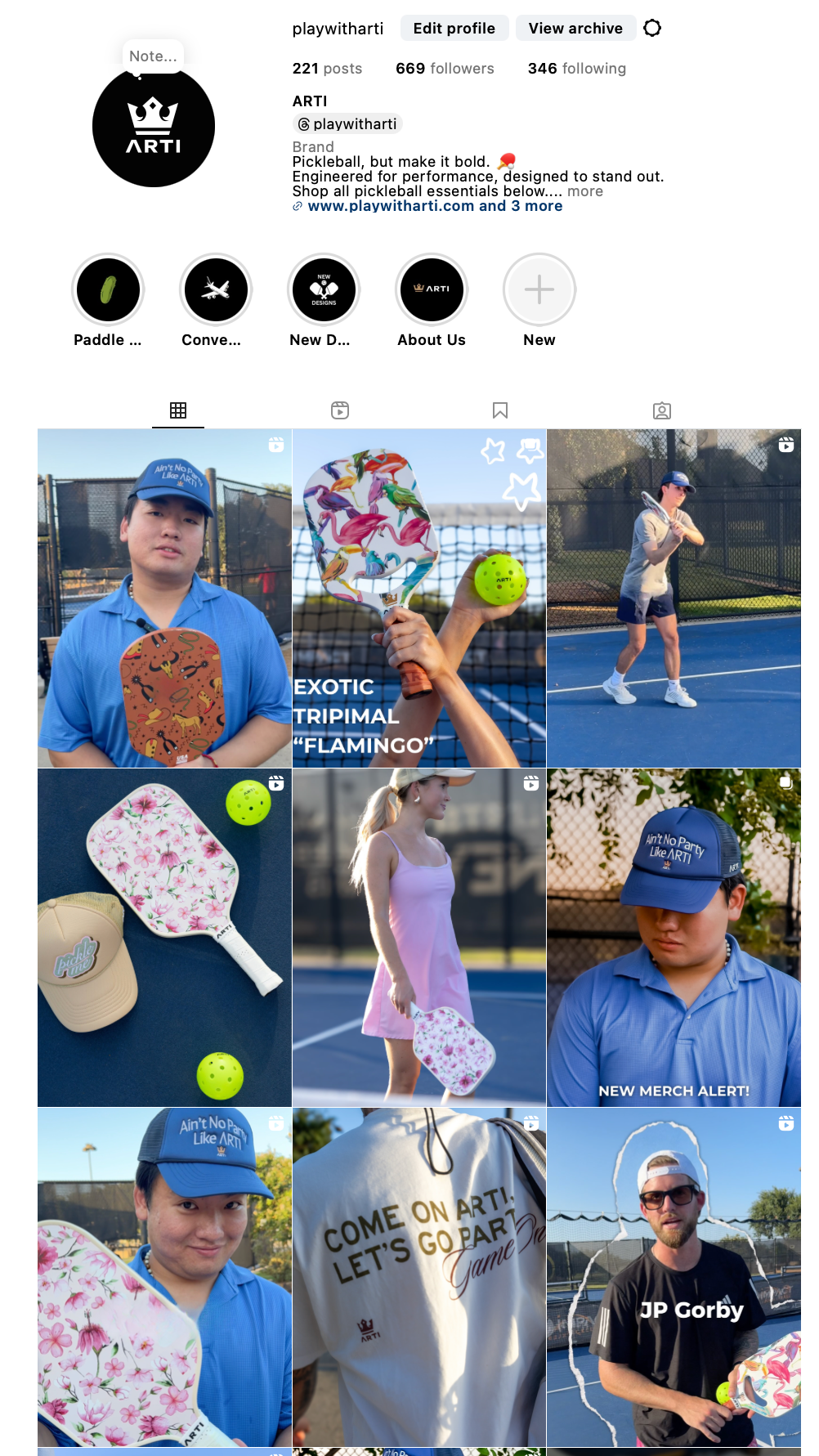 Grew ARTI’s brand presence and social performance by combining creative storytelling with data-driven marketing—turning a niche paddle and pickleball brand into a community that engages, shares, and buys.